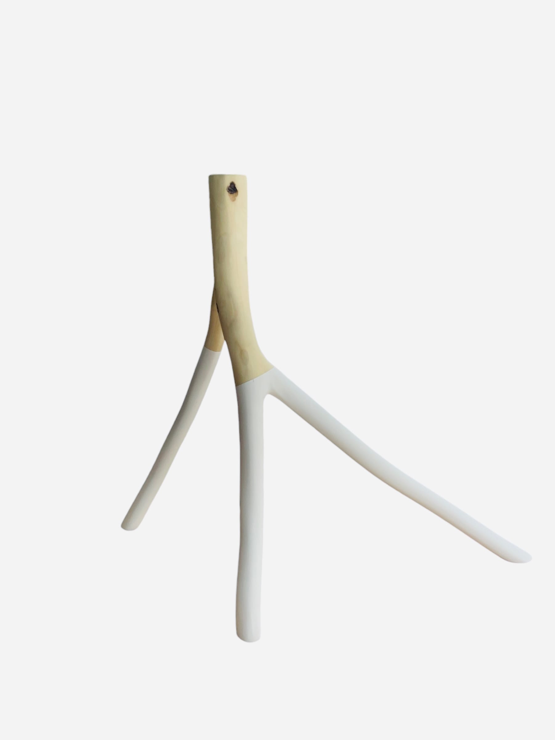 Aparte kaarsenstandaard, gemaakt van hout, ontworpen door Philippe Xerri. Geen enkele standaard is gelijk.