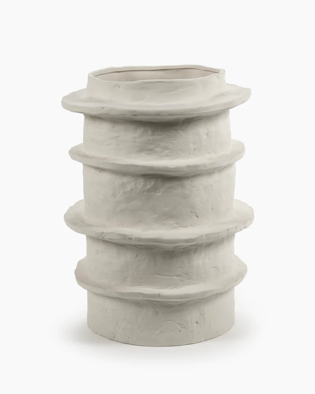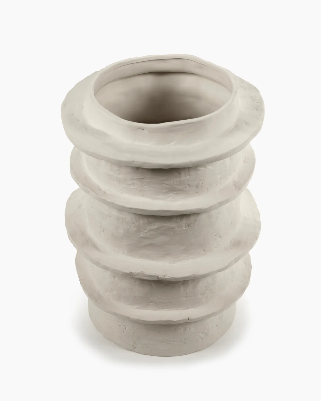 Deze vaas is meer dan alleen een functioneel object. Het is een meesterwerk van vakmanschap en design. Met haar Urban Jungle collectie weet Marie Michielsen speelse ontwerpen te maken met aardewerk. Deze vazen hebben een tijdloze uitstraling en zijn verkrijgbaar in een elegante beige kleur.