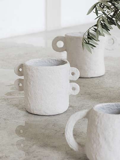 Pot gemaakt van papier-maché. Geen enkele pot van de serie Marie Machielsen is het zelfde.